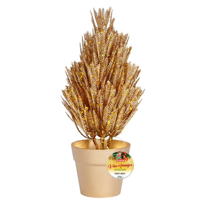 Arranjo decorativo metalizado c/vaso pinheiro 25cm cx:048