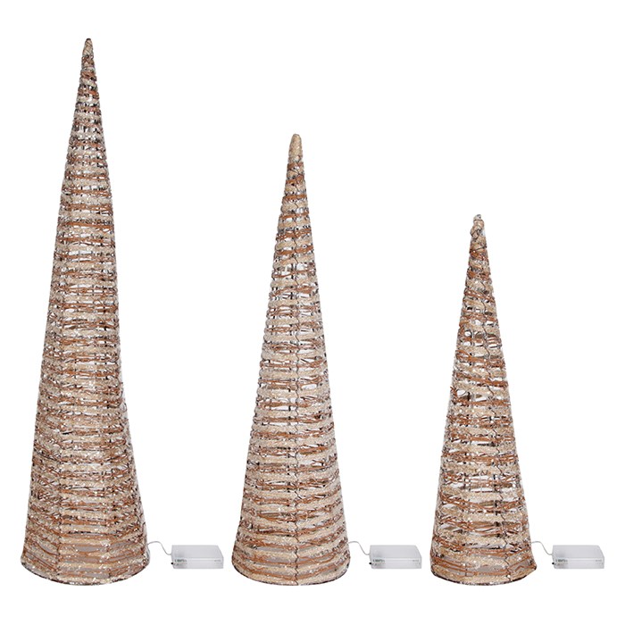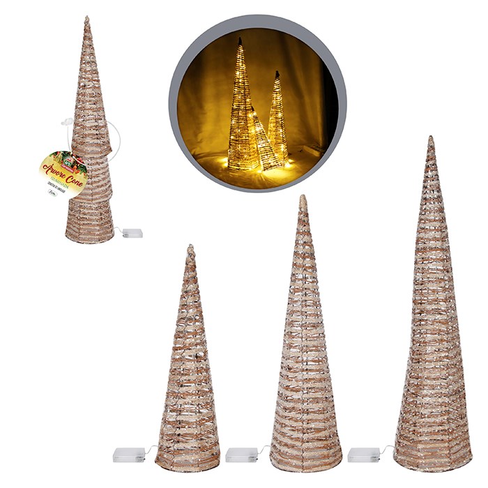 Arvore cone iluminada rustica c/3pcs bco quente cx:001
