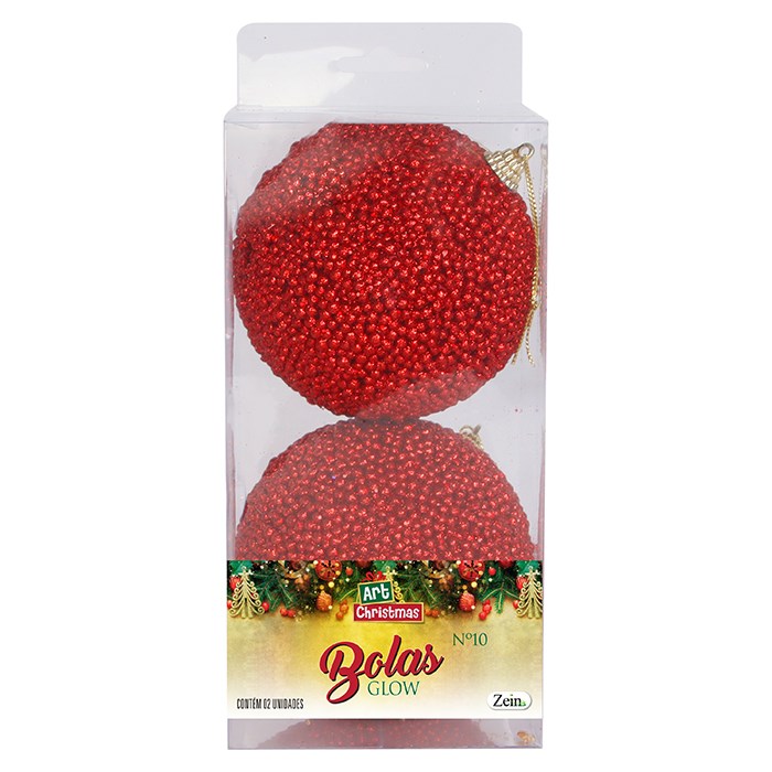 Bola tb glitter glow 10cm 2pcs vermelho cx:012