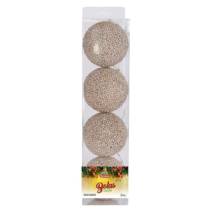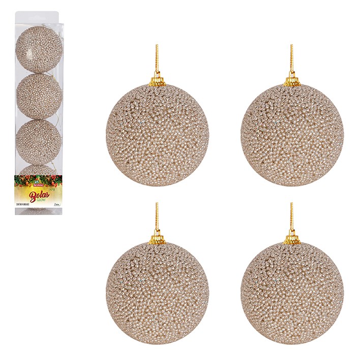 Bola tb glitter glow 8cm 4pcs champanhe cx:024