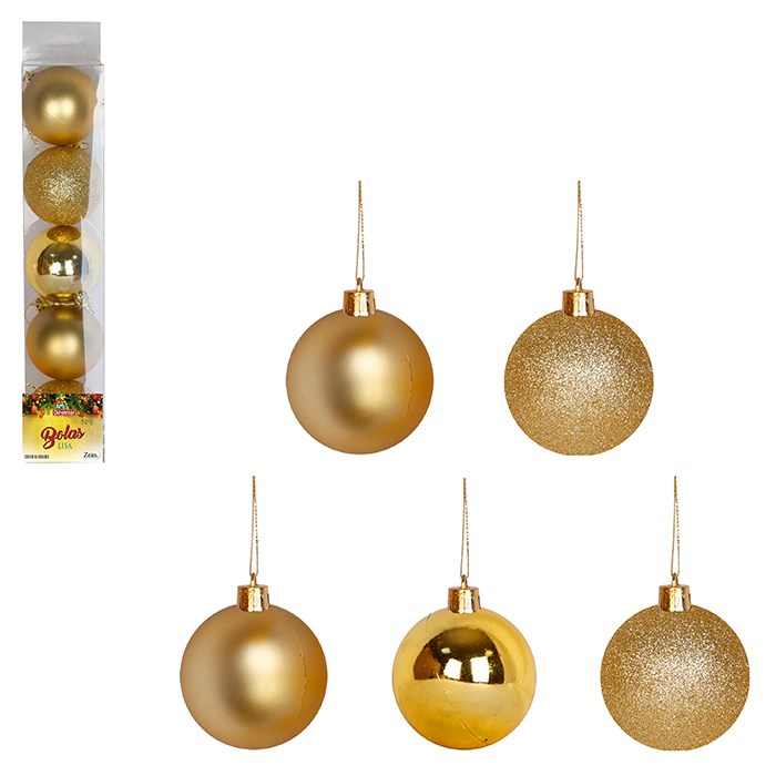 Bola tb lisa 6cm 5pcs dourada cx:024