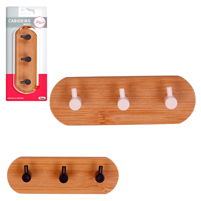 Cabideiro wood 3 ganchos cx:072