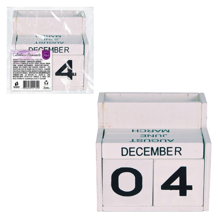 Calendario permanente madeira 7,5x8x9 cm cx:048