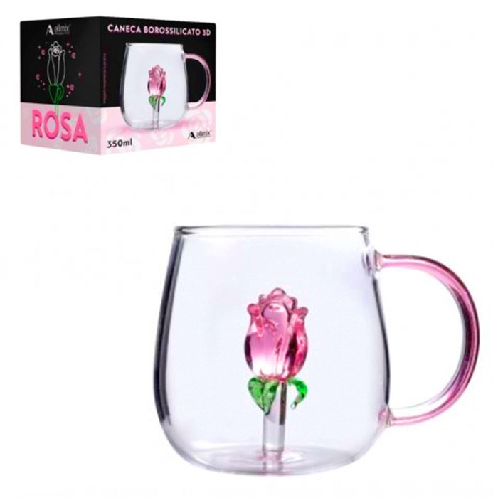 Caneca borossilicato 350ml decoracao no centro 3d flor cx:024