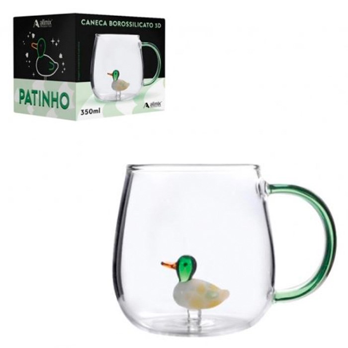 Caneca borossilicato 350ml decoracao no centro 3d patinho cx:024