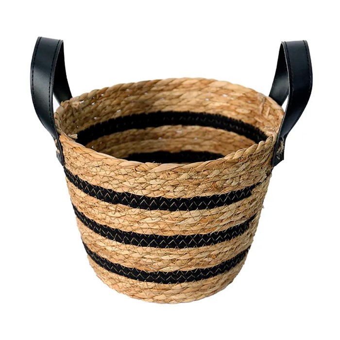 Cesto de fibra natural e algodao com alca 24x18cm preto cx:006
