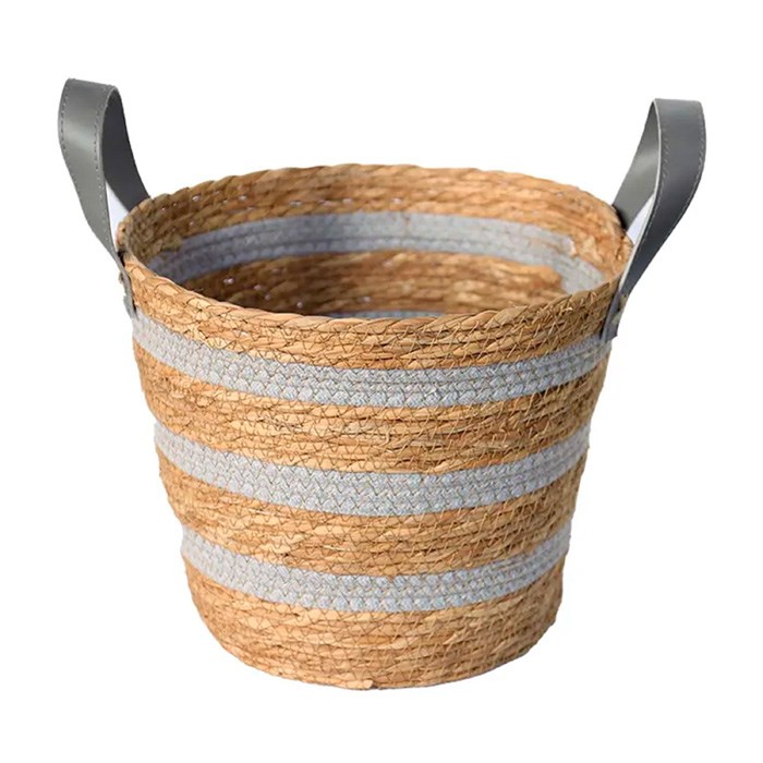 Cesto de fibra natural e algodao com alca 28x22cm cinza cx:006