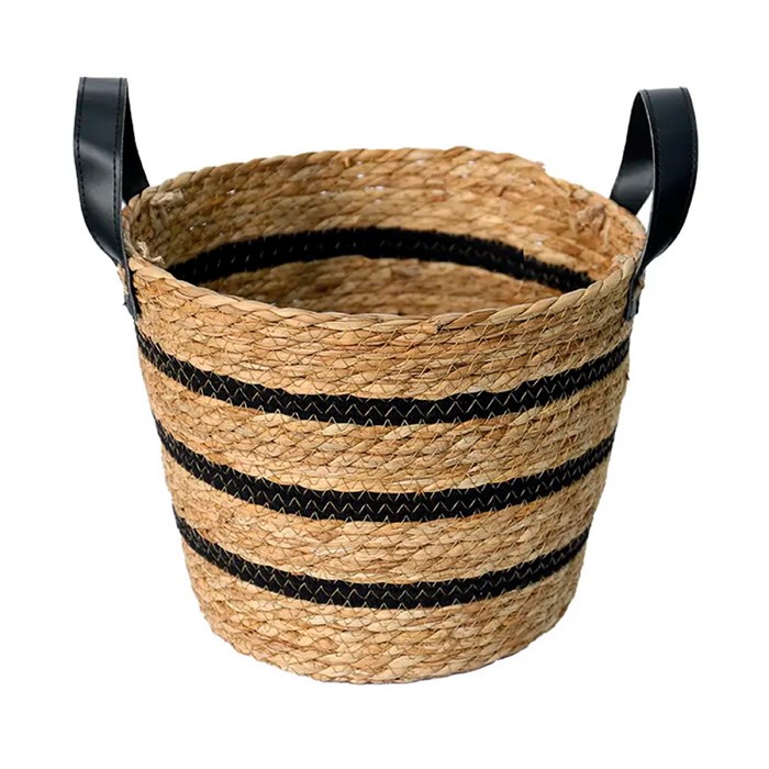 Cesto de fibra natural e algodao com alca 28x22cm preto cx:006