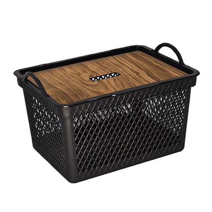 Cesto telado 20lts tampa label madeira cx:008