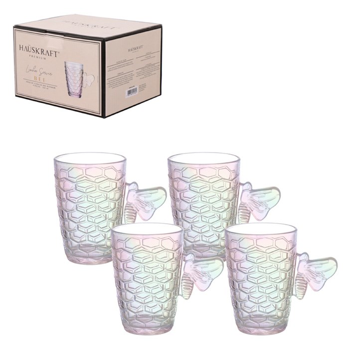 Cj caneca vidro 200ml 4pcs bee rainbow cx:012