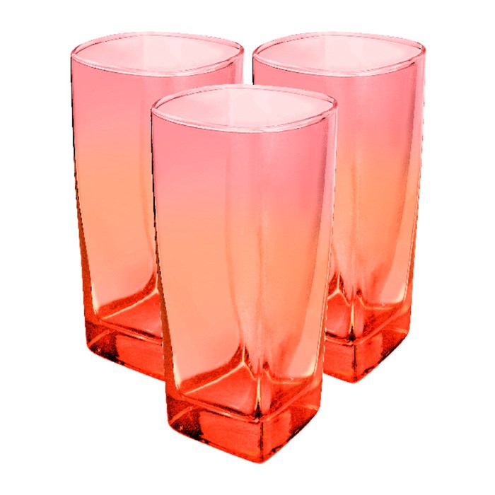 Copo de vidro 320ml 3pcs degrade laranja texas cx:012