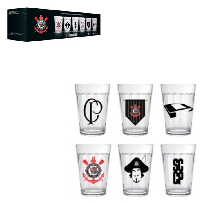 Copo de vidro americano 190ml 6pcs corinthians cx:008
