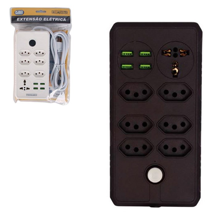 Extensao eletrica 2m 7 tomadas 1 universal 4 usb bivolt ar1018