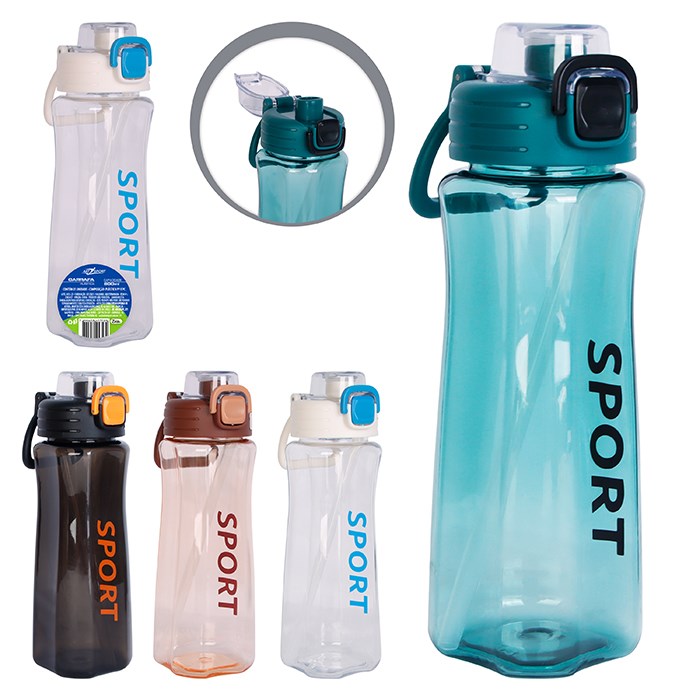 Garrafa plast c/canudo 800ml cx:024