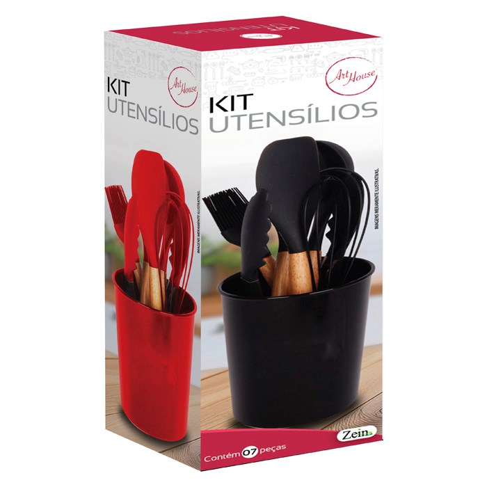 Kit utensilios 7pcs silic cabo madeira cx:012