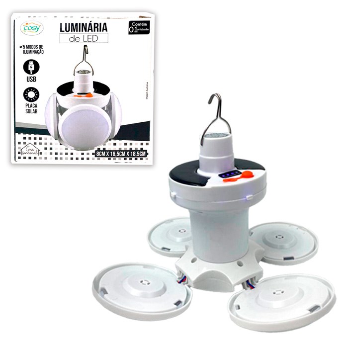Luminaria retratil c/led e placa solar 19cm dt24169 cx:036