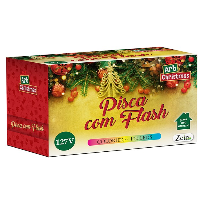 Pisca 100led c/flash (strobo) color 10m 127v cx:025