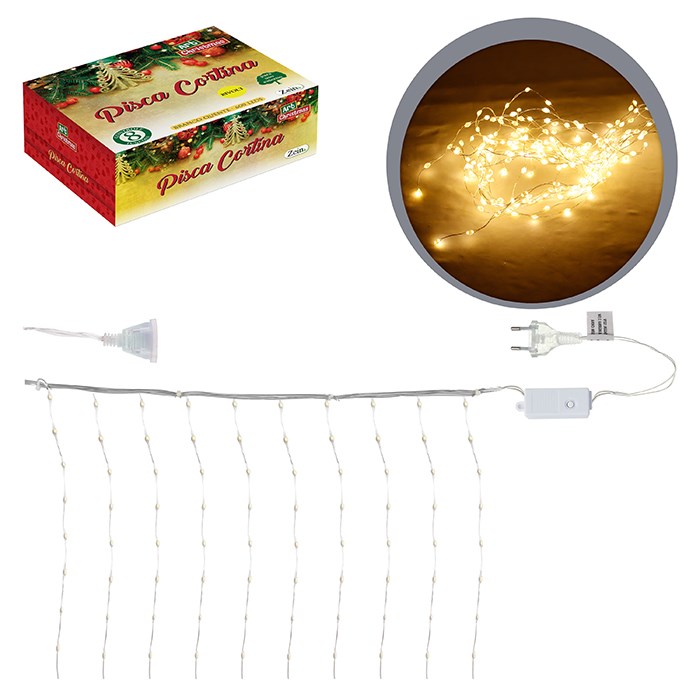 Pisca cortina ??? 600led bco frio 3mx2mx10 fios bivolt 8f cx:025