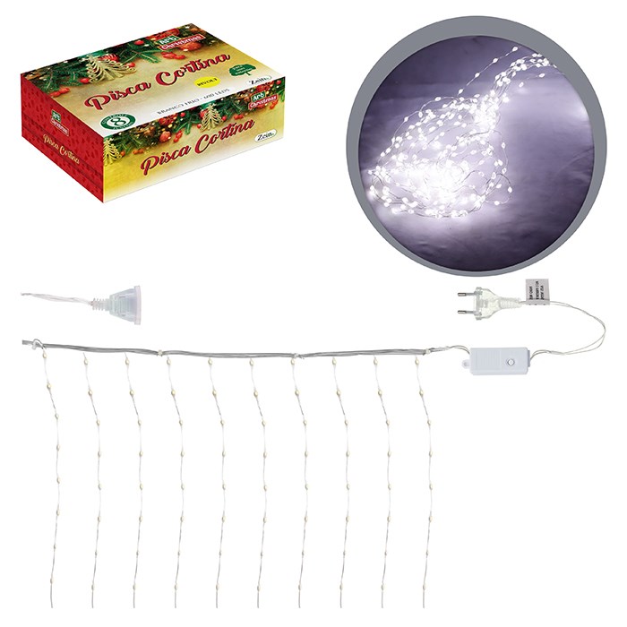 Pisca cortina ??? 600led bco quente 3mx2mx10 fios bivolt 8f cx:025