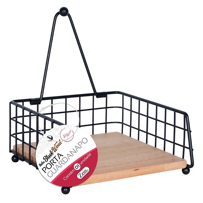 Porta guardanapo aramado c/madeira 6,5x15x15cm cx:024