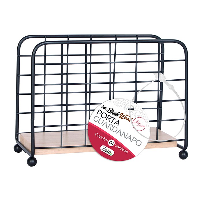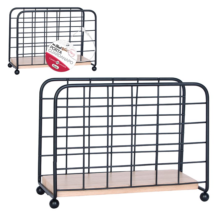 Porta guardanapo aramado c/madeira 7x15,5x11,5cm cx:024