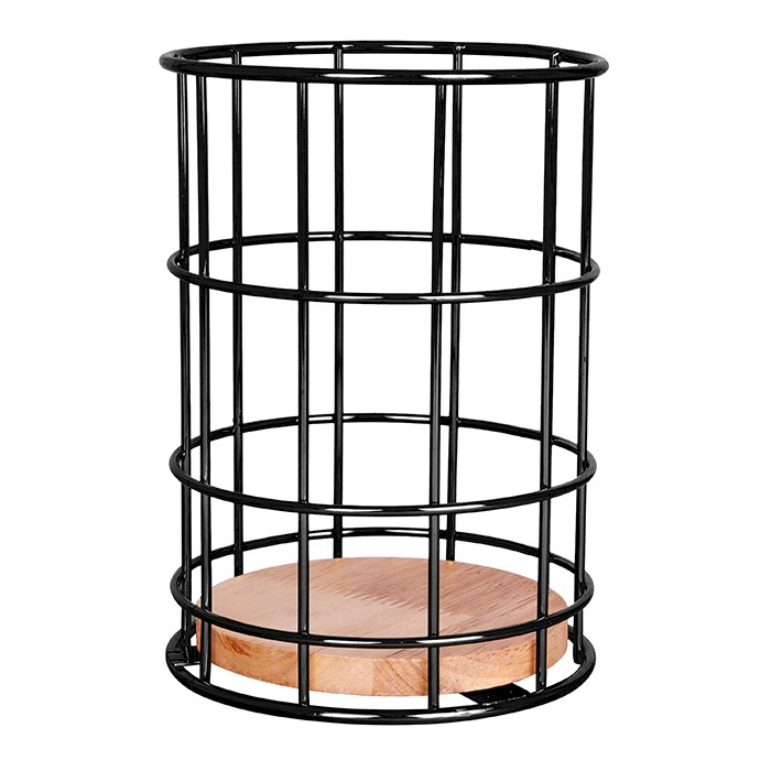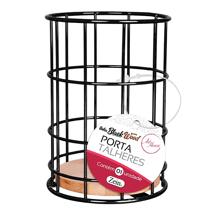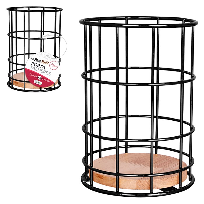 Porta talheres aramado c/madeira 16x11cm cx:024