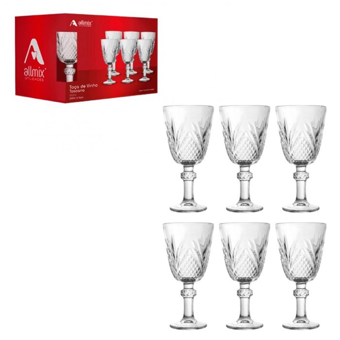 Taca 200ml vinho de vidro toscana cx:004