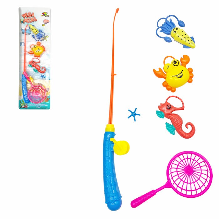 Varinha pega peixe c/3 peixes e rede cx:024